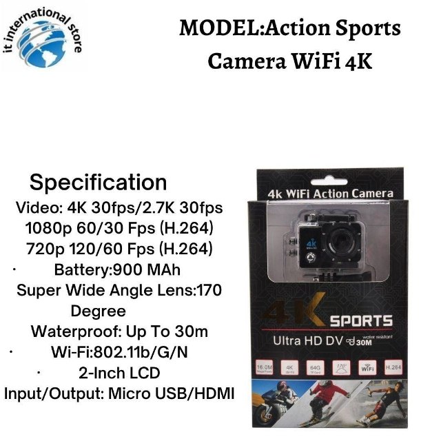 Action Sports Camera Wifi 4K | Dukan.pk